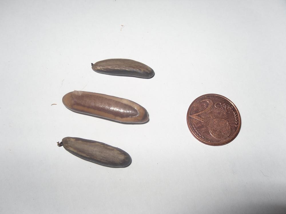De langwerpige zaden weet ik niet en de laatste foto zijn harige grijze zaden. Als ik het mij goed herinner was dit een speciale soort.