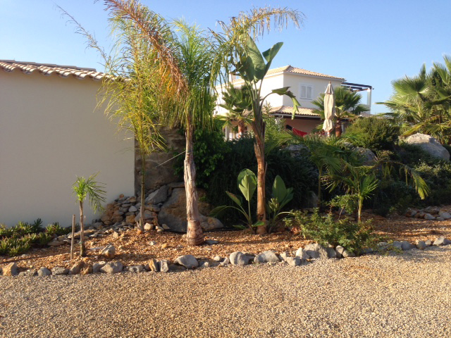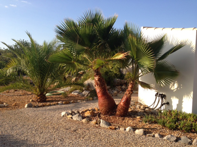 Prachtige tuin heb je daar Alex, het lijkt wel een groot park, erg mooi aangelegd! Leuk ook om in dat klimaat met exoten te experimenteren Mooie Hyophorbe verschaffeltii, heb er ook enkelen die ondanks droogte behoorlijk snel groeien. In Mei gaan we ze weer bekijken