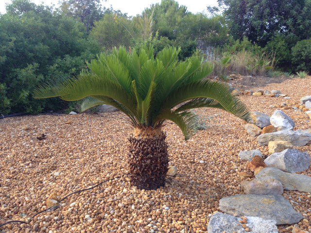 Cycas had ik meerdere als stam gekocht in Nederland, toen met vliegtuig mee naar Portugal! Nu voor het eerst geflushed!