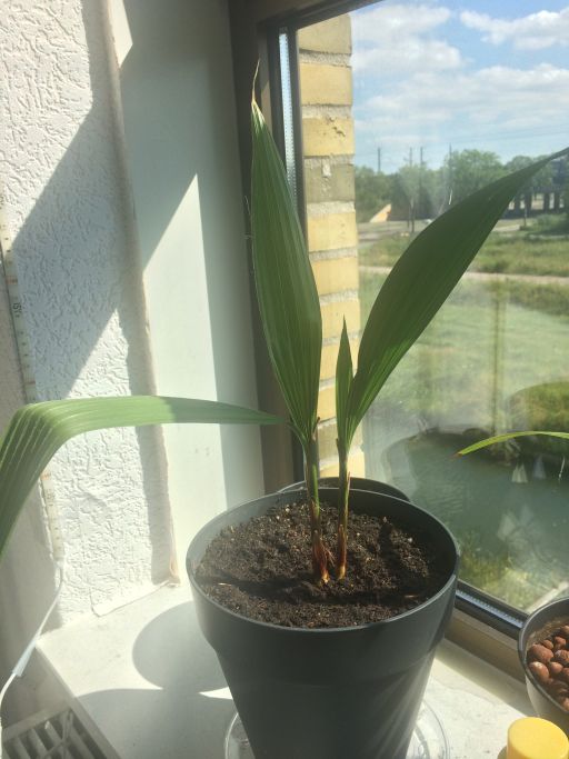 Maar Washingtonia's groeien toch vrij snel? Die heb ik namelijk ook staan, van dezelfde periode (november 2015). Ik heb ze onder de zelfde omstandigheden laten groeien en die zijn inmiddels bijna een meter hoog en staan inmiddels in de tuin van het zonnetje te genieten. Het is wel duidelijk een waaierpalm ... maar hij is dunner dan de (andere) Washingtonia's. De bladeren zijn ook dunner en kleiner. De Dactylifera's, die ook niet bijzonder snel groeien, groeien sneller dan deze.