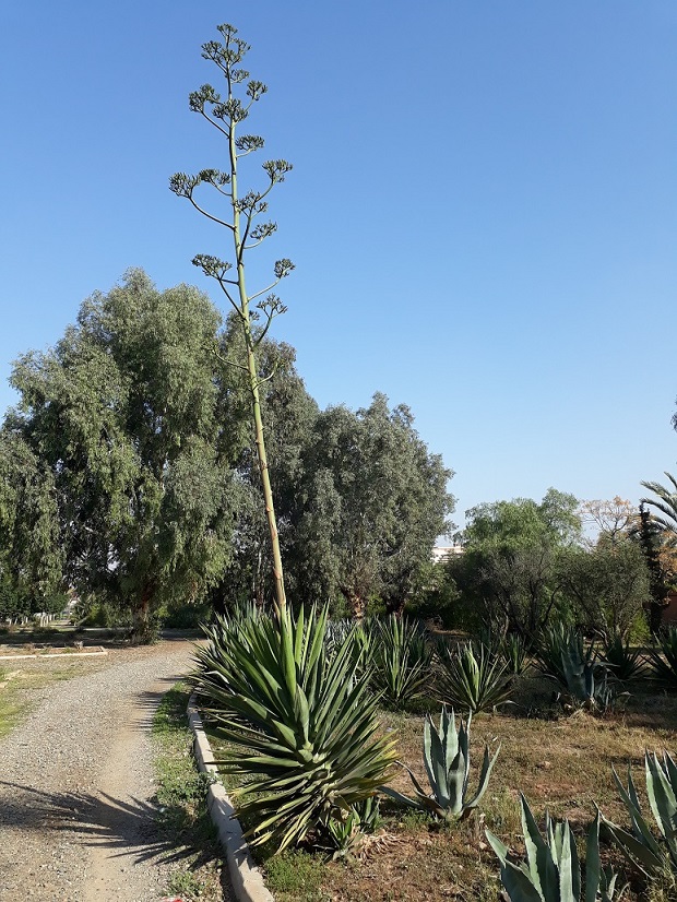 De Agave's americana die ernaast groeien zijn vermoedelijk zaailingen van een inmiddels verdwenen exemplaar. Agave americana en ook andere soorten ontwikkelen na de bloei op de bloeiwijze stekplanten bulbillen genaamd die wanneer ze losraken door de wind zich in de omgeving van de moerplant kunnen vestigen.