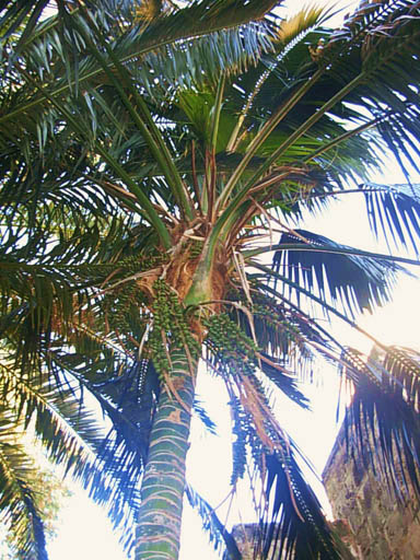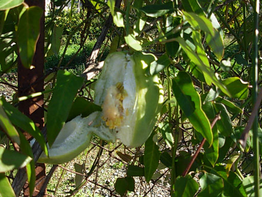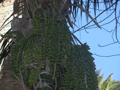 en zaden van een mij onbekende palm (zie foto van de palm en de zaden) en van een klimplant waar wel nog de bladeren en de vruchten aanhingen. De vruchten zijn een vuist groot, waren vanbinnen uitgedroogd maar zaten vol met witte zaden die na twee uur reeds volledig bruin waren verkleurd. Kent er iemand deze palm en de klimmer