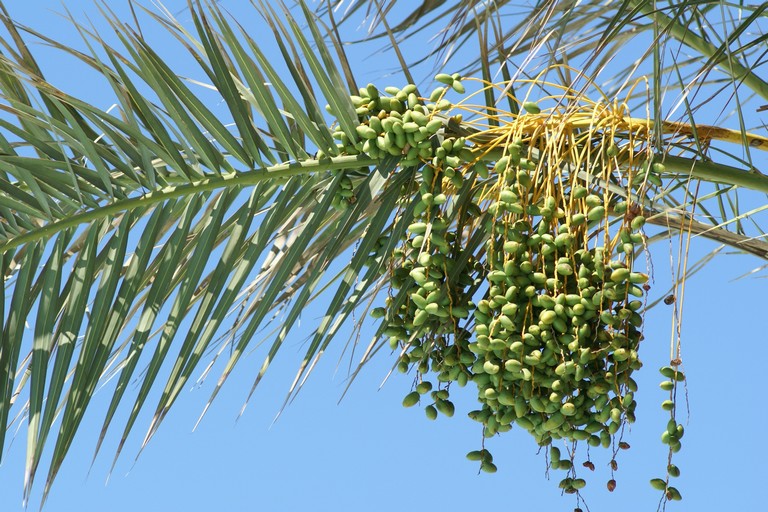 Een dactylifera maakt scheuten aan, heeft een dunnere stam en meer grijs in de stam en bladeren.