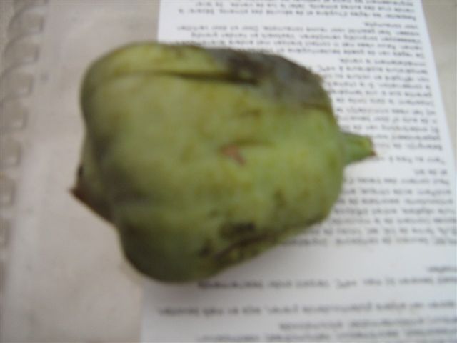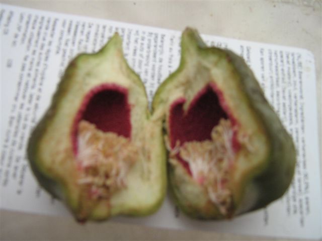 Het ziet er uit als een soort vijg( omgekeerde bloem - schijnvrucht), je ziet de restanten van de bloem binnenin de vrucht zitten.