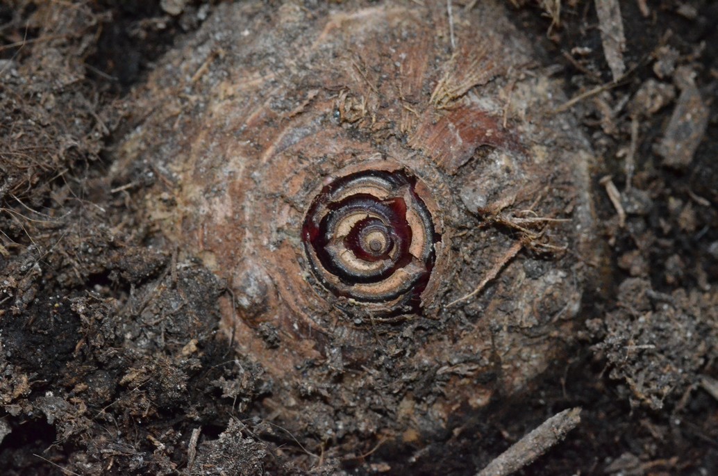 Naar c. esculenta knollen (eddoes) heb ik ook gezocht maar die waren blijkbaar al allemaal de deur uit. Er lagen wel nog 2 verdwaalde knollen tussen de zoete aardappelen, maar die heb ik laten liggen. Voor je 't weet heb je aardperen mee of iets dergelijks. Ik ben ook zo gene knollenkenner hé :D