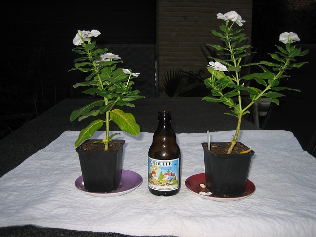 eentje heb ik in huis overwinterd. Deze is minder dik van stam en heeft geen bloem.