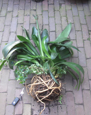 Ik kwam deze plant op de groenstortplaats tegen. Eerst dacht ik aan de wortels en de bladeren te zien dat het om een orchidee zou gaan.