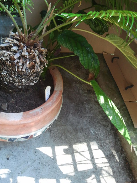 Een vriend van mij is op vakantie en ik moet op zijn planten passen. Hij heeft ooit een Cycas gekocht maar na een tijdje begon hij te merken dat er een andere plant naast begon te groeien. Dit "onkruid" is op dit moment helemaal verweven met de Cycas.