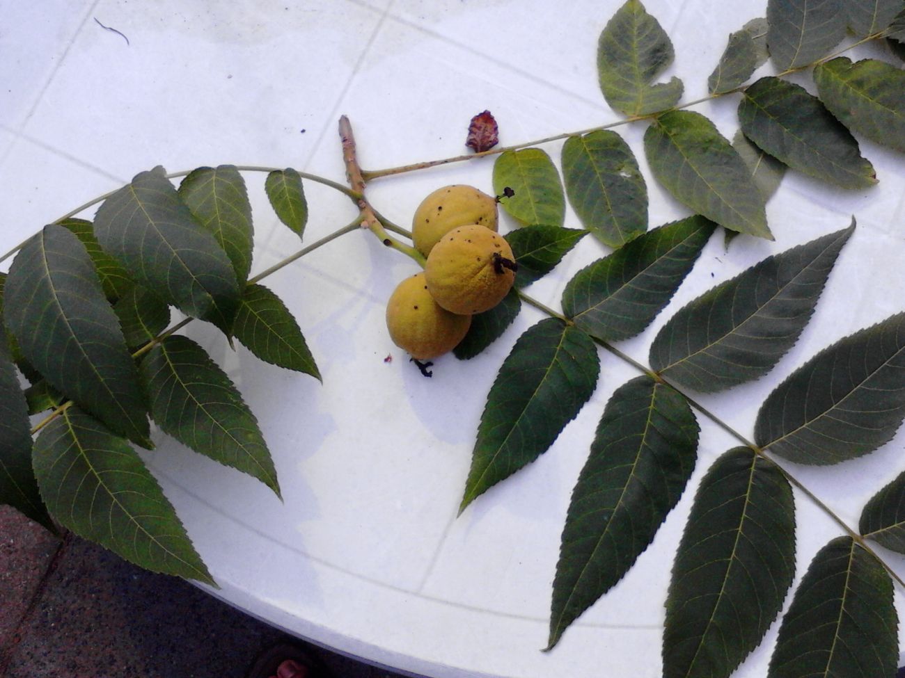 De bladeren hebben een scherpe punt wat de walnoot niet zo heeft.
