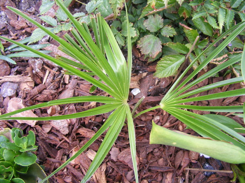 Palm staat iets te diep naar mijn idee, de grond is wat verzakt door werkzaamheden in de tuin.