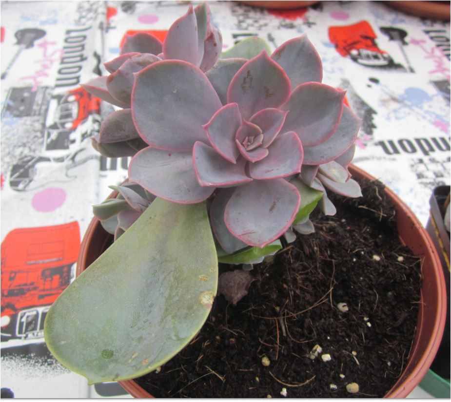 En dan hieronder de vetplant De eerste is de onderstam van de plant die opnieuw is uitgelopen en de 2e foto is de kopstek: