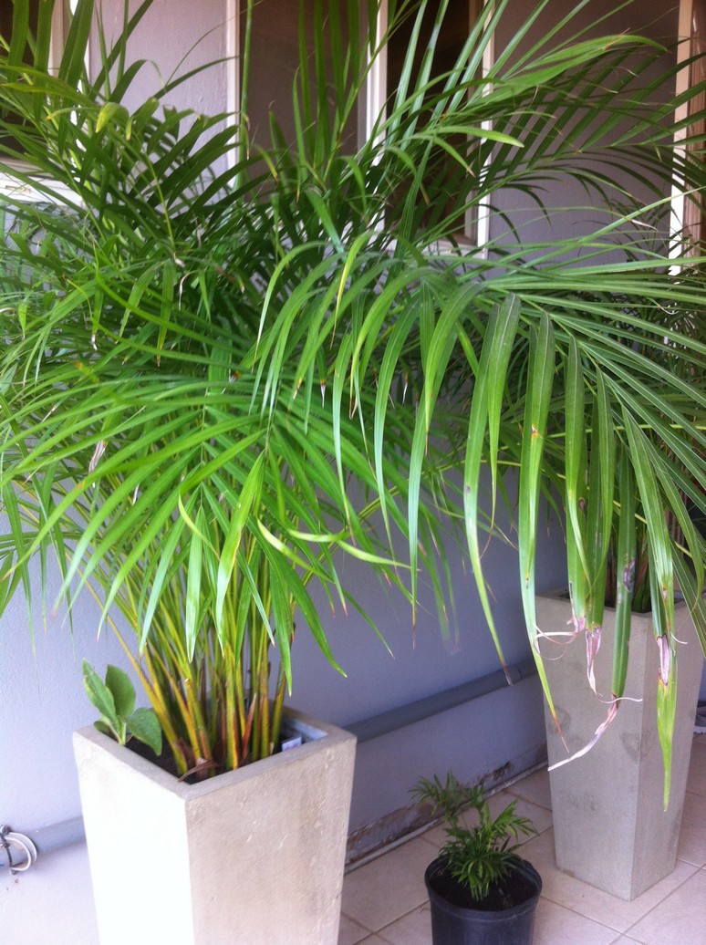 Ook van de grotere die ernaast staan weten we eigenlijk niet wat het is. Areca's?