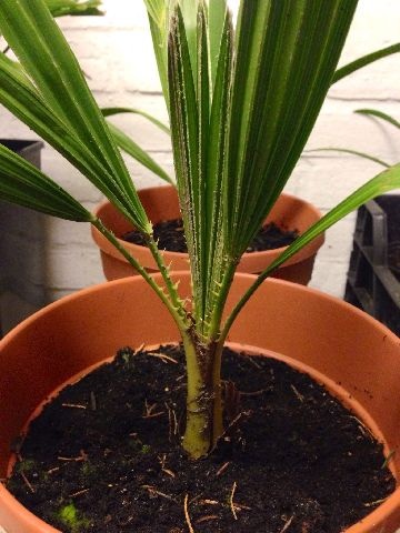 Het is niet de allermakkelijkste palm (dat zijn een aantal varianten van de Trachycarpus), maar de Chamaerops humilis is zeker geen moeilijke. Deze palm is goed over te houden in Nederland, maar wel beschermd en moet vooral droog gehouden in de winter. Je zult moeten bijverwarmen als de temperaturen beneden –10ºC komen. Of dat ook al geldt voor een klein exemplaar als die op de foto durf ik niet te zeggen. Mijn zaailingen/jonge plantjes staan 's winters voor de zekerheid binnen in een onverwarmde kamer. De grotere blijven wel buiten, maar beschermd en eventueel licht bijverwarmd.