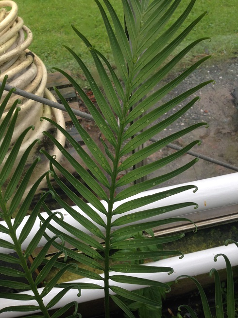 Zelfde blad als een Cycas alleen een zachter, platter en breder blad (mogelijk door de kas)