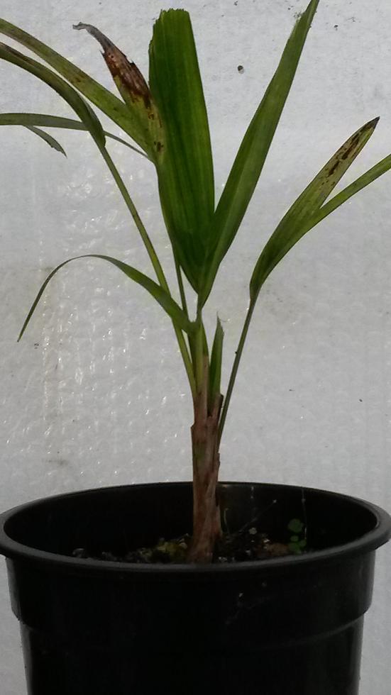 En bij foto 2 en 3 volg ik Niek ( alleen zou ik toch even de naamgeving willen verbeteren : het zijn Adonidia merrillii). Sommige van mijn 3-jarige zaailingen hebben ook dezelfde bruine vlekken als op de foto . Geen gemakkelijke soort vind ik en de Chambeyronia al zeker niet.