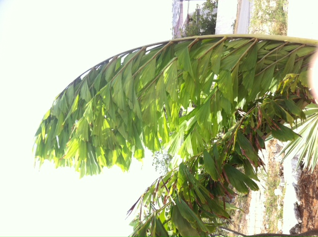 Allen, mijn oom heeft deze nogal (vind ik) vreemde palm in de tuin staan (op Bonaire). Heeft iemand een idee welke het is?