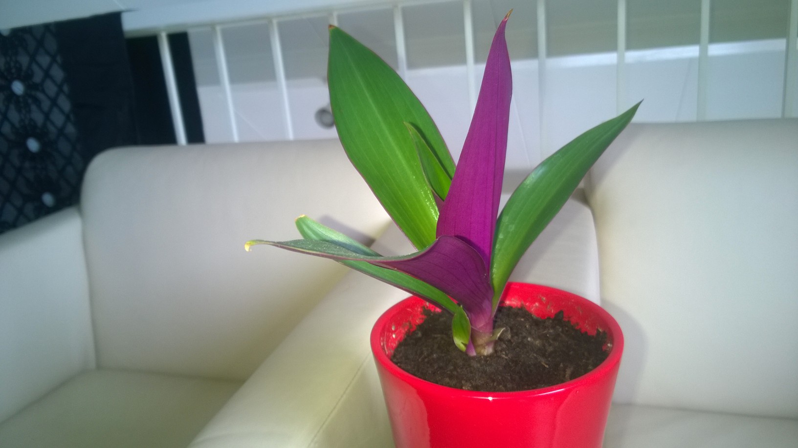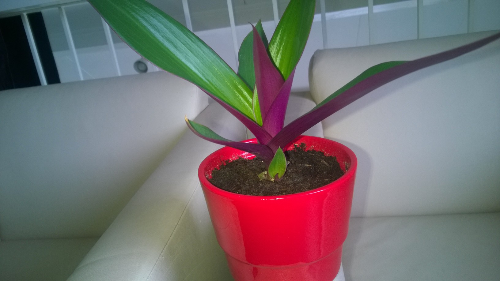 En hoe; hij groeit sinds een paar weken enorm en de prachtige paarse kleur aan de onderkant van het blad is ook reeds te zien.