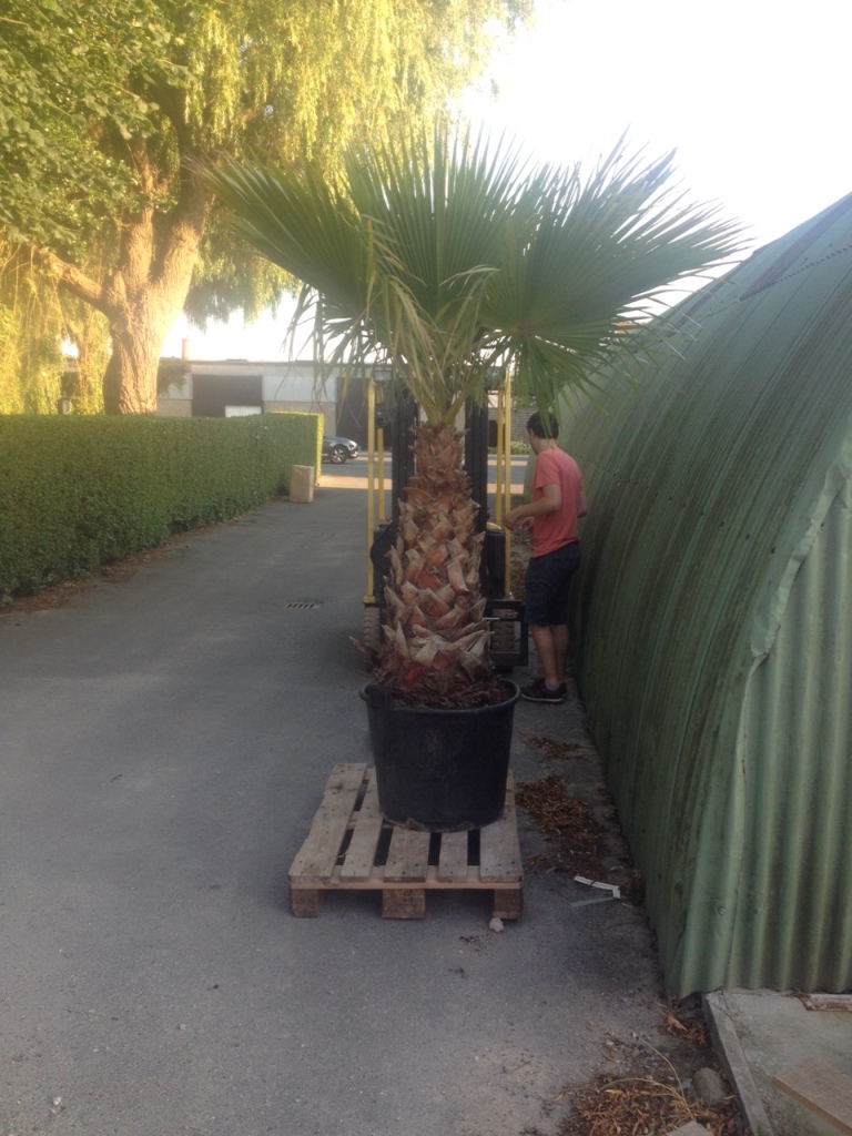 Zo'n palm krijgt bij mij in de winter een huisje geisoleerd met bubbeltjesplastic, houtsnippers over de wortels en vanaf -2 gaat een warmtekabel aan.