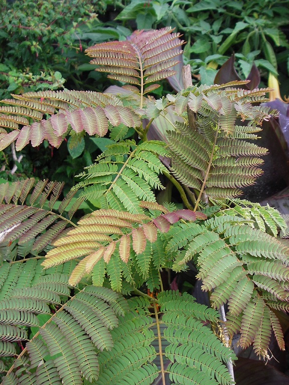 Ongeveer 3 jaar geleden kreeg ik een aantal Albizia zaden. Natuurlijk in de grond gestopt en vormt inmiddels een leuk boompje. Aleen.... weet ik niet welke soort dit zou zijn.