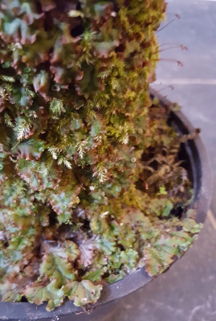 Echter levermossen (zoals vb. het bekende parapluutjes-mos) verwijder ik direct uit al m'n potten en zelfs grotendeels uit de tuin! Levermossen woekeren!