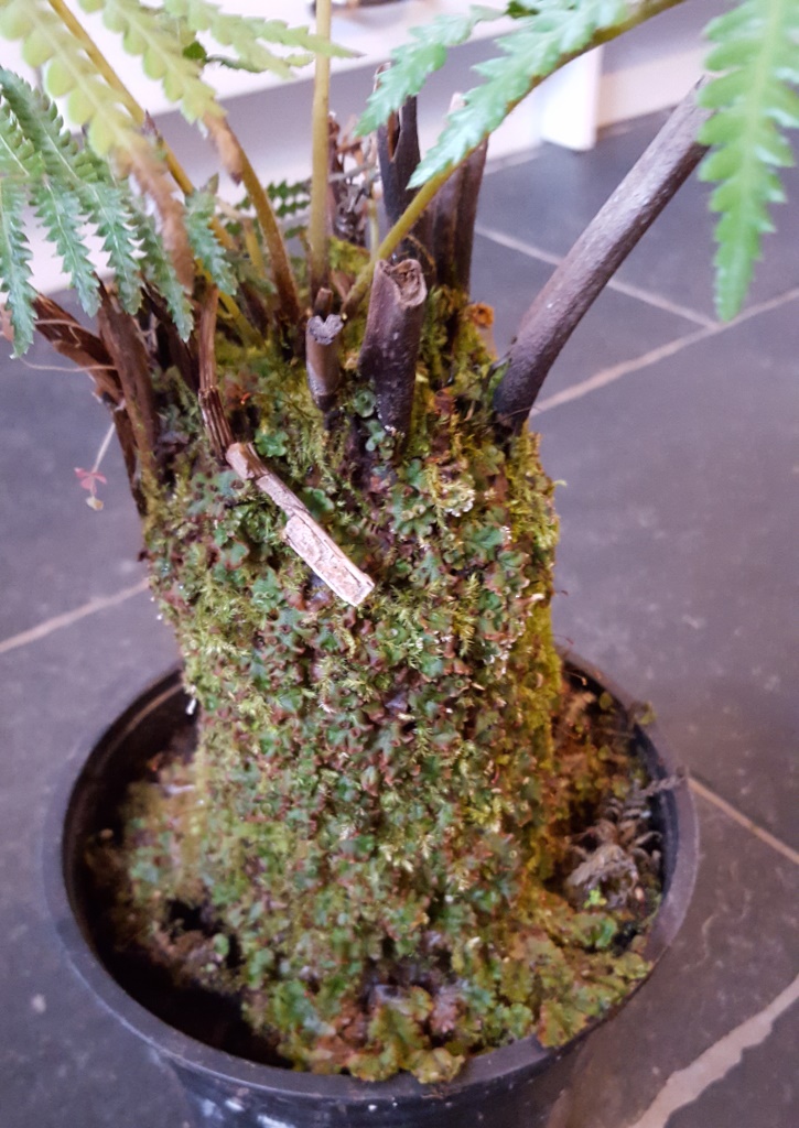 Zelf heb ik totaal geen verstand van boomvarens, maar aangezien ik foto's uit habitat heb gezien waarin de stammen volledig begroeid zijn met mos ben ik benieuwd hoe dat zich verhoudt tot jouw uitspraak.