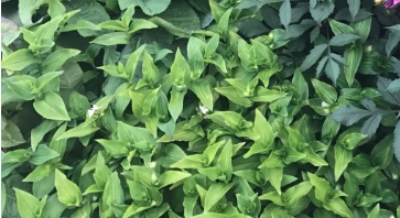 De andere plant heb ik meekregen via een bestelling Canna's, hiervan waren enkele kleine stukjes van het witte rhizoom meegekomen welke erg snel uitgroeide tot een plant groter dan de Canna's. Beetje afhankelijk van de aanwezigheid van direct zonlicht krijgen de bladeren witte en/of roze vlekjes. Ook kunnen ze geen graadje vorst verdragen en sterven de bovengrondse delen gelijk af maar het vanuit het rhizoom loopt het elk jaar weer uit (Foto 2 in volle grond).