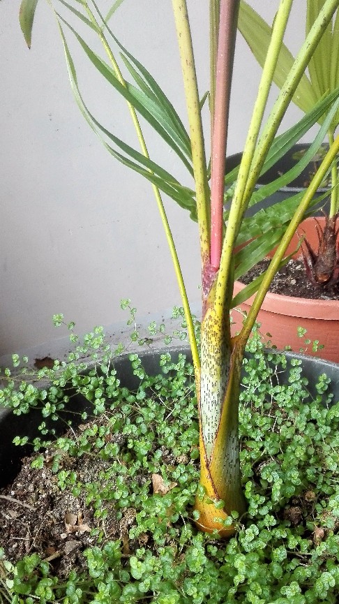 Dit lijkt meer een Dypsis lutescens, maar dan een die rode stammen geeft.