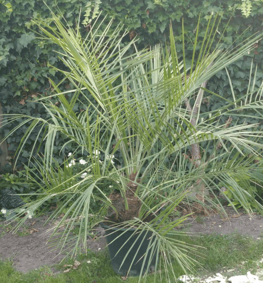 Ik vind het moeilijk te beoordelen, ik heb deze geloof ik zo'n 2 en een half jaar waarvan het eerste half jaar in pot overwinterd in de koude kas en vorig jaar in de volle grond met op z'n koudst -12.. dit jaar was niet bepaald een goed jaar qua zon uren en temperatuur, maar zoals je kan zien op de foto is er wel groei te zien, zie het kleurverschil van de stam bovenin. Ik denk dat de palm goed is aangeslagen en in een warm zonnig jaar nog wel eens heel hard kan groeien.