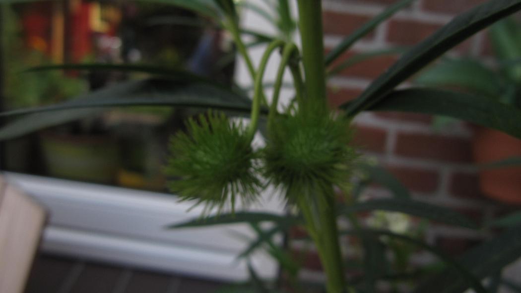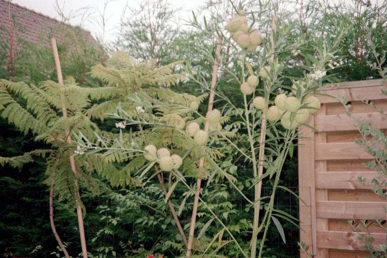 Hier een foto van 2007 van ons exemplaar, op 1 jaar tijd komen er dus bloemen aan, en daarna de zaadbollen. Het zaad blijft lang kiemkrachtig, zo heb ik vorige week wat zaad van 2 jaar oud in een potje gezaaid, en de plantjes staan al een halve cm hoog.
