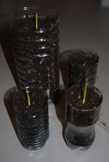 Als experiment is er 1 zaailing geplant in een 1.5 liter fles en de rest in een 0.5 liter flesjes.