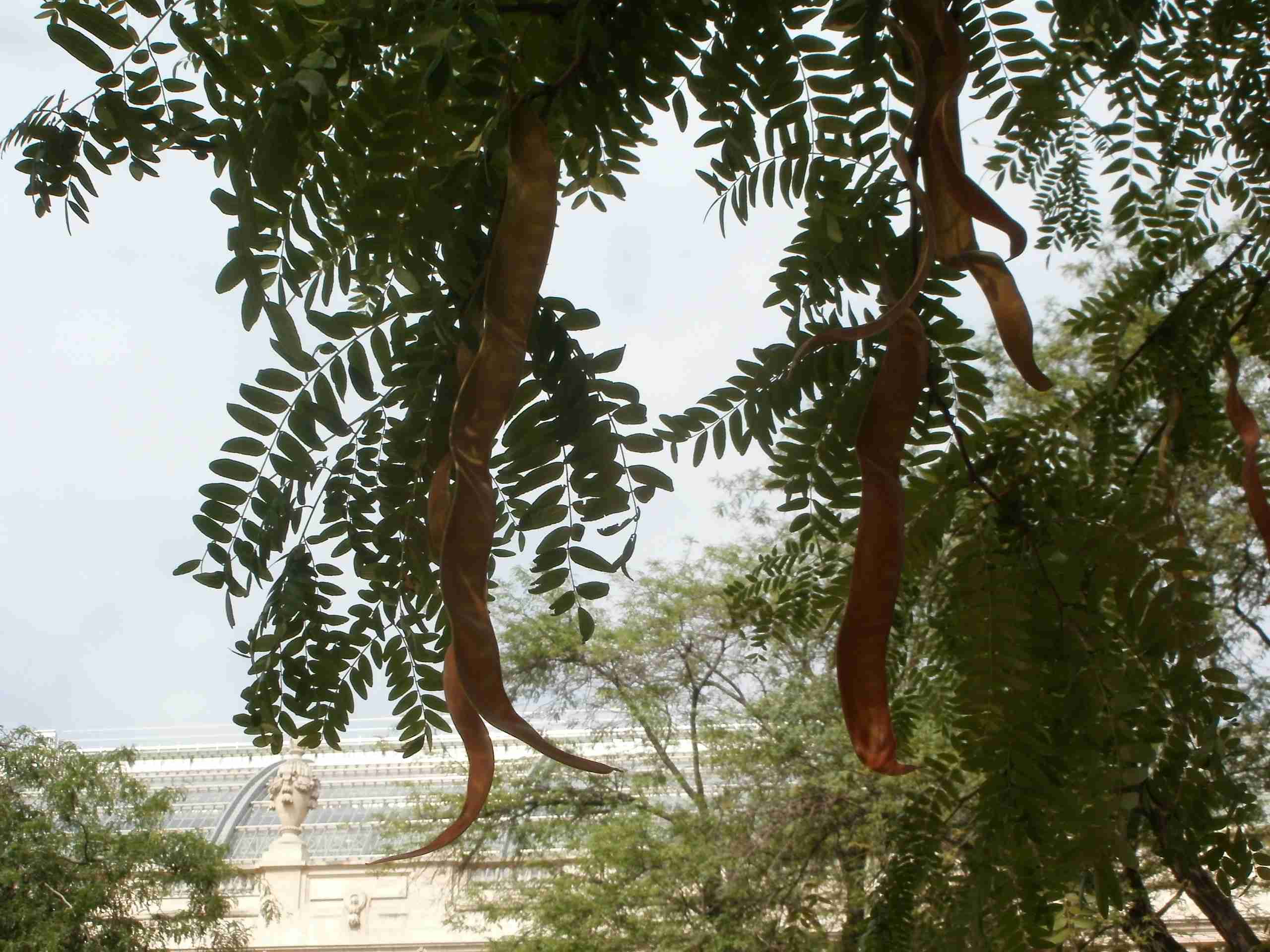 Vorig jaar kwam ik in Parijs (Petit Palais) een boomsoort tegen met lange bruine peulen.