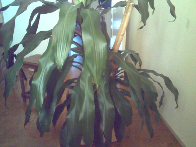 Ik heb vorige week op een rommelmarkt een plant/boom gekocht. Weet iemand welke soort dit is? Een paar dagen geleden heb ik hem universele plantenvoeding gegeven en sinds gisteren zijn enkele van zijn bladeren aan het afsterven. Ze worden namelijk bruin en droog. Zou de reden de voeding zijn of een gebrek aan zonlicht? Welke voeding mag ik deze plant dan geven? De plant bestaat uit een dikke stam en twee grote scheuten. Zoals te zien is op de laatste foto is deze stam wat aan het rotten. Is dit dramatisch? De scheuten groeien namelijk uit de wortels en niet uit deze stam.