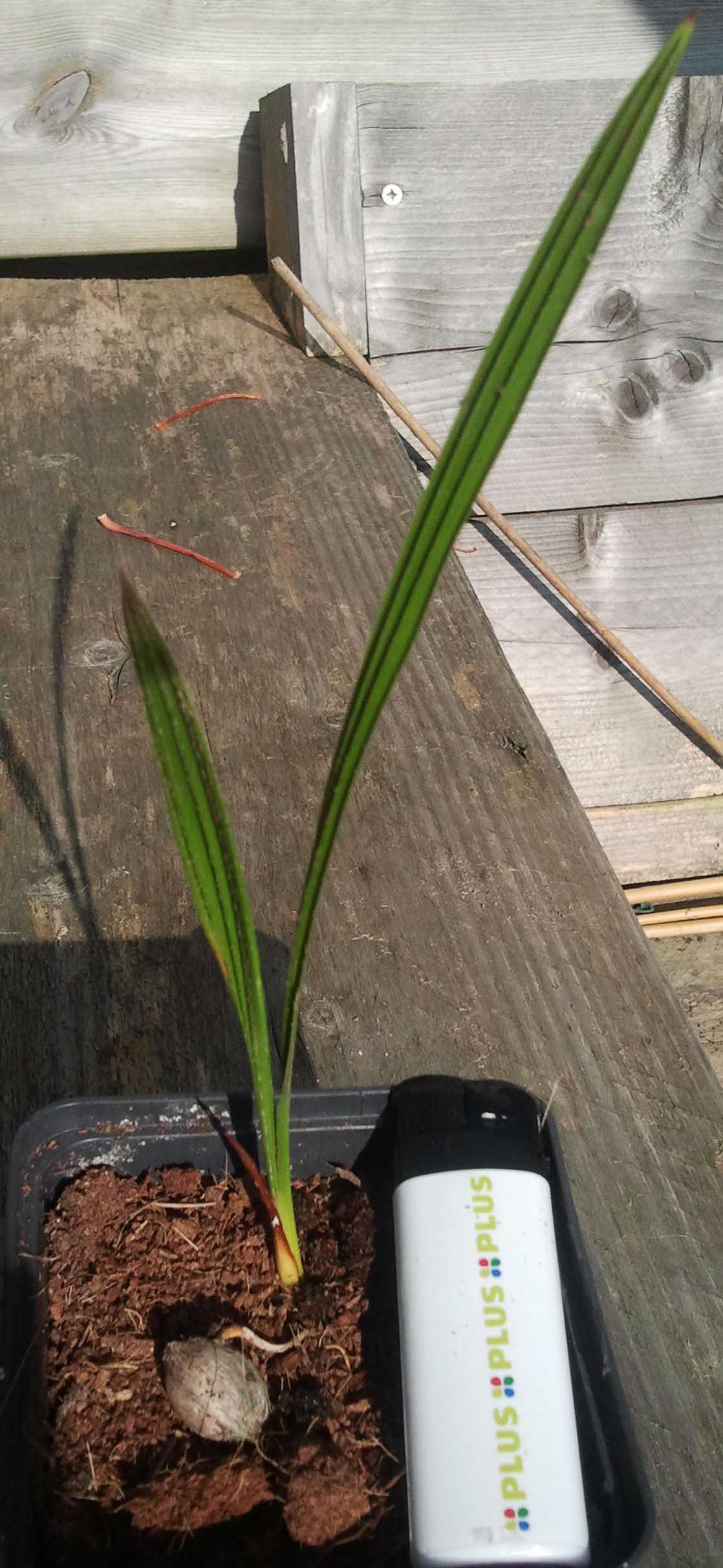 Niet alleen zijn die vezels op het zaad veel dikker (bij kokosachtig) maar ook het eerste blad van de zaailing is volledig anders ;)