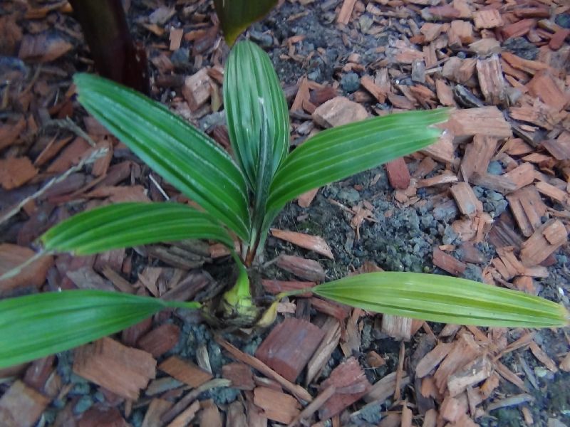 Hier staan een pak palmen staan met een label dat zegt 'Palm Sp.(locatie)" waarvan een foto ontbreekt of te onduidelijk is...