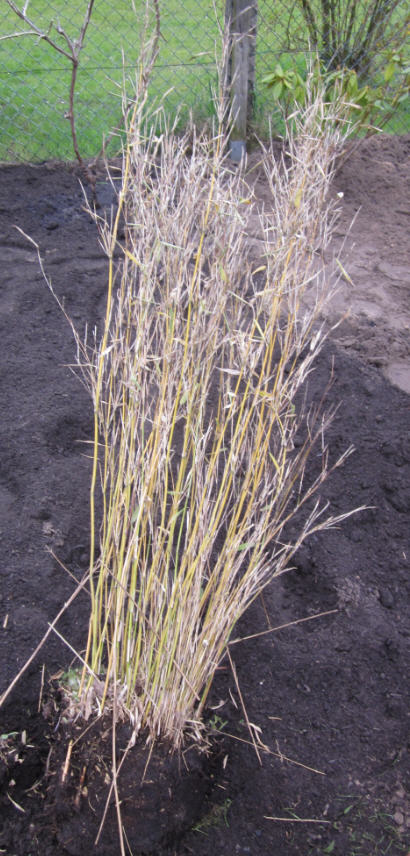 Toen ik compost ging halen bij een stortpunt voor tuinafval vond ik daar een pol van bamboe. Toen ik een medewerker vroeg of ik de plant mocht meenemen was dat geen probleem.