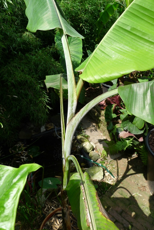 In Haps een banaan gekocht.....was in de veronderstelling dat ik een Ensete Glaucum gekocht had vanwege de "glans" op de stam.....Zie foto 1.