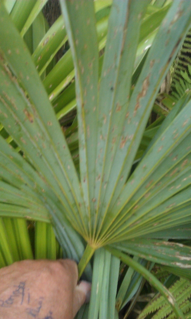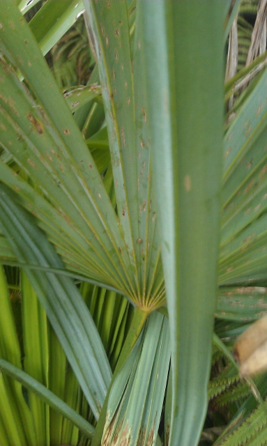 Vervolgens kun je letten op de bladsteel. Staan er bijvoorbeeld stekels op? En zo ja in welke richting? Zo zou je een grote Chamaerops op afstand al kunnen verwarren met een Trachycarpus maar aangezien de Trachy geen bladstekels heeft is het onderscheid snel gemaakt. De stand van de bladstekels helpt je dan weer het verschil zien tussen bv een Chamaerops en een Livistona.