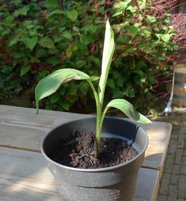 Maar toen kwam de volgende vraag...hoe komen die in godsnaam dan in die potten. Heb geen bananen planten gehad met vruchten en ik heb deze niet gezaaid.