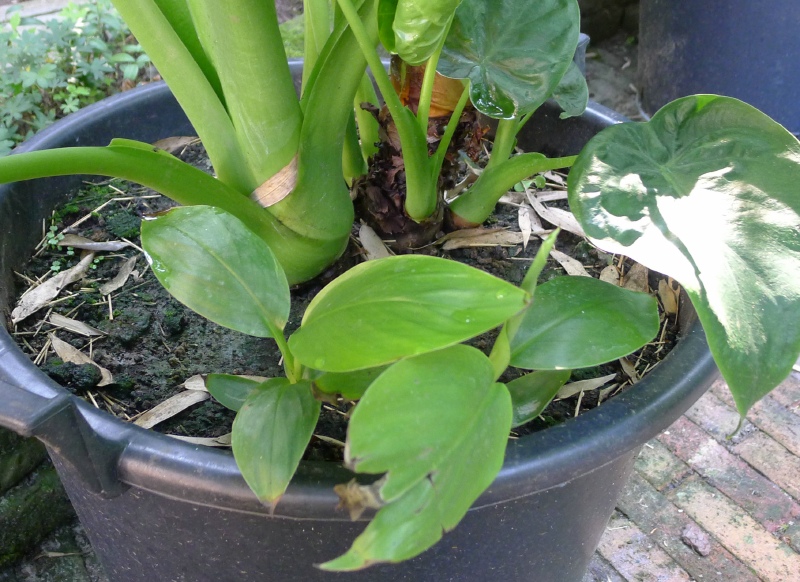 Plantjes bij de Alocasia.