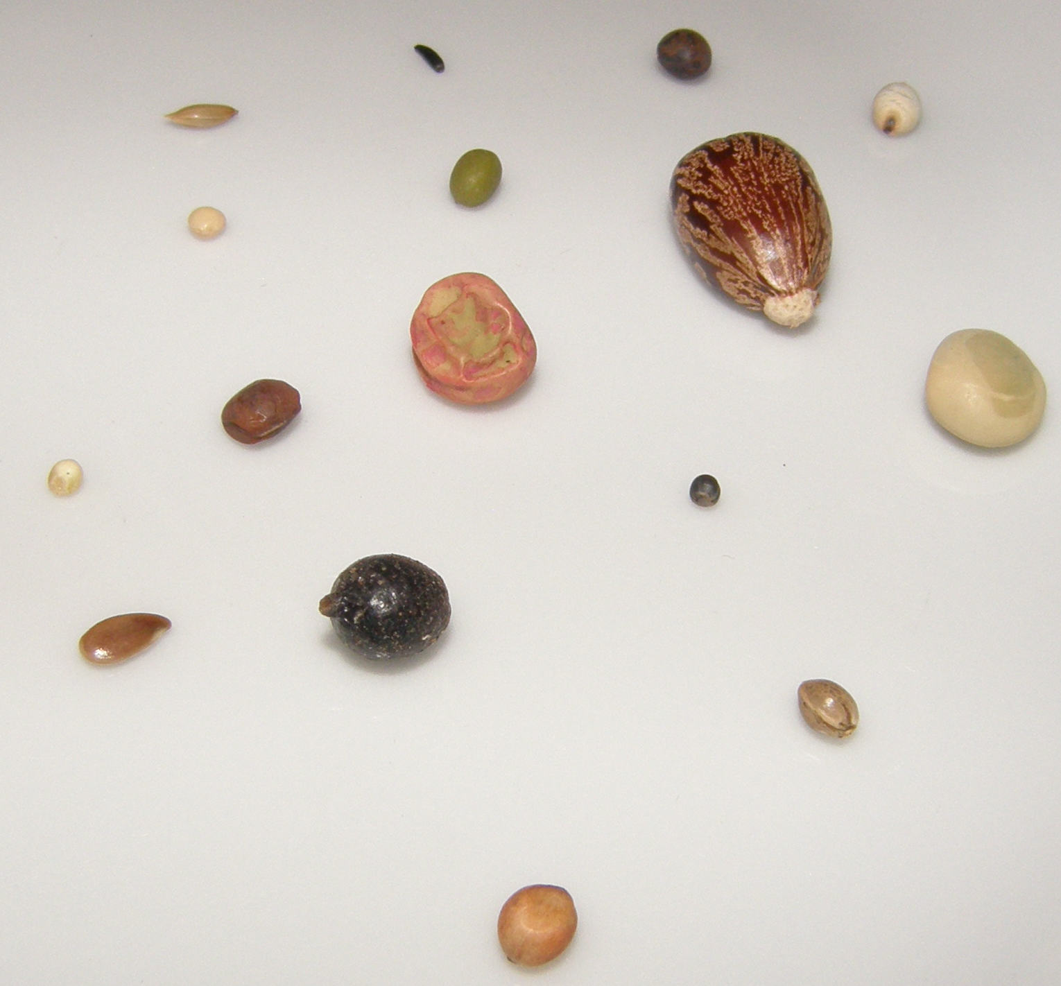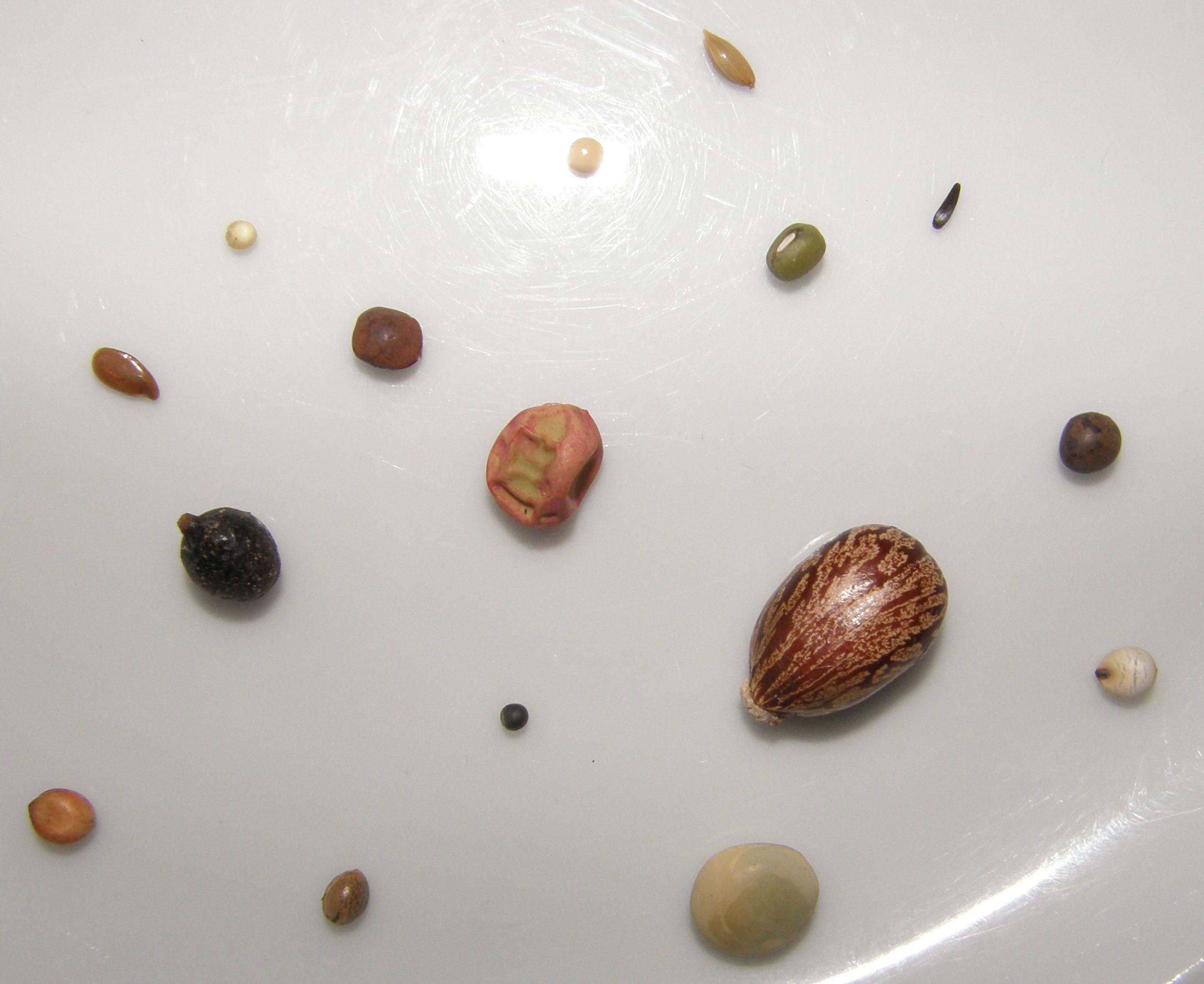 Het bruine zaadje dat dicht bij de ricinus ligt (in beide foto's) kon wel eens een washingtonia zijn.