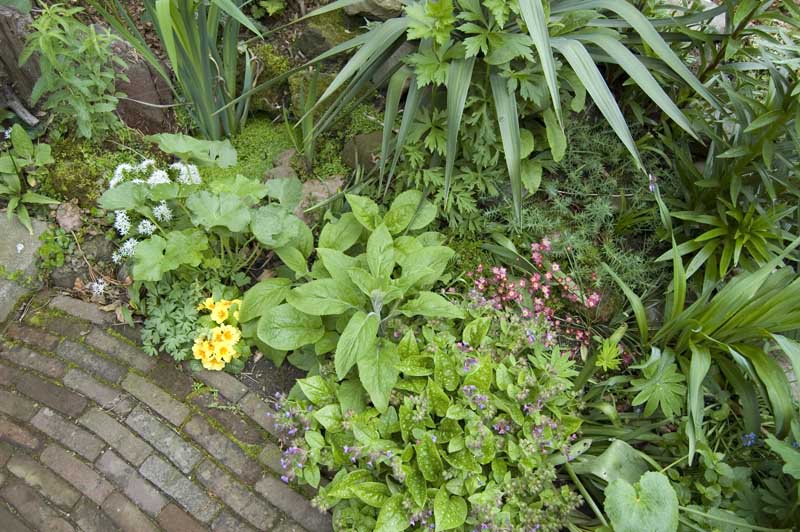 Sommige planten doen het nu goed, vooral de kruidachtigen, mussa's komen maar langzaam op gang en de tetrapanax steroidal giant laat nu pas zijn eerste groen knopjes zien.