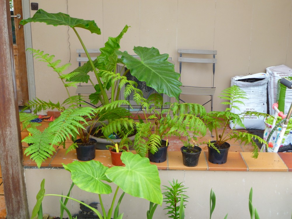 de gele naamplaatjes verklappen al dat ik een bezoekje mocht brengen bij Eduard , een leuke verzameling boomvarentjes gekocht . ik hoop ze ook zo hoog te krijgen als zijn exemplaren dit was een van de unieke momenten dat ik niet door de knieen moest maar omhoog moest turen om de veren te aanschouwen