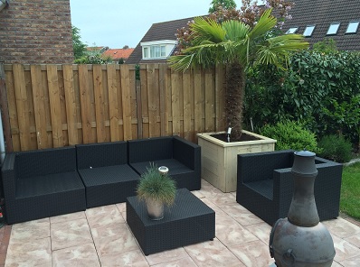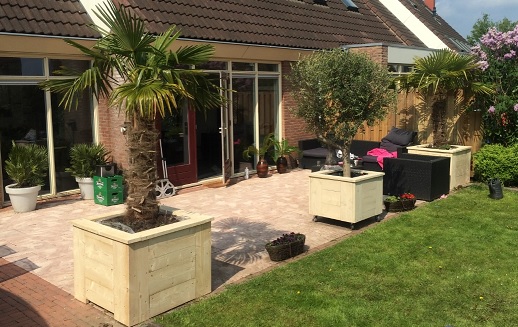ziet er heel gezellig uit, maar waarom de trachycarpus in pot ?