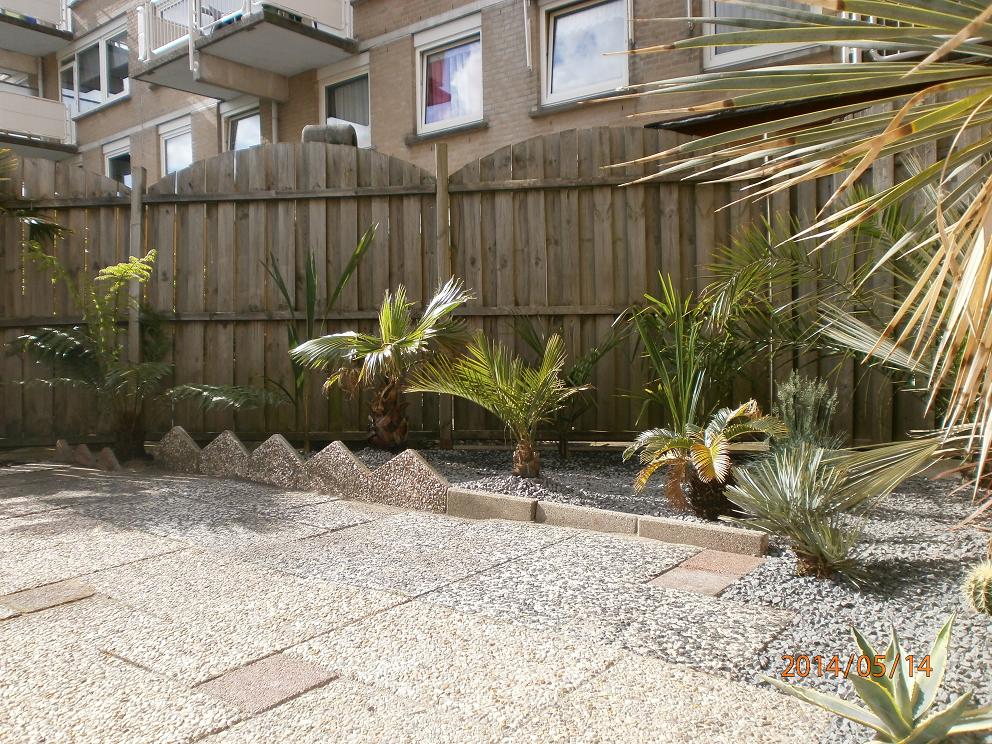 Het is wel heel mooi geworden nu, mijn complimenten ;) Maar nu is het allemaal nog klein/jong. Ik vrees dat je over een jaartje of 3 a 4 problemen gaat krijgen. Alles gaat elkaar verdrukken en concurreren om het licht. Die Phoenix tegen de schutting...dat zal wat worden, weet je hoe groot dat beest word ? :D