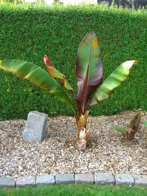 hoi nog enkele foto van de tuin met enkele nieuwe aanwinsten.een dicksonia stam 1.60 hoog onder 40 cm boven 30 cm.musa balbisiana en een albizia de gewone.en een kleine ensete ventricosum.mvg shorty