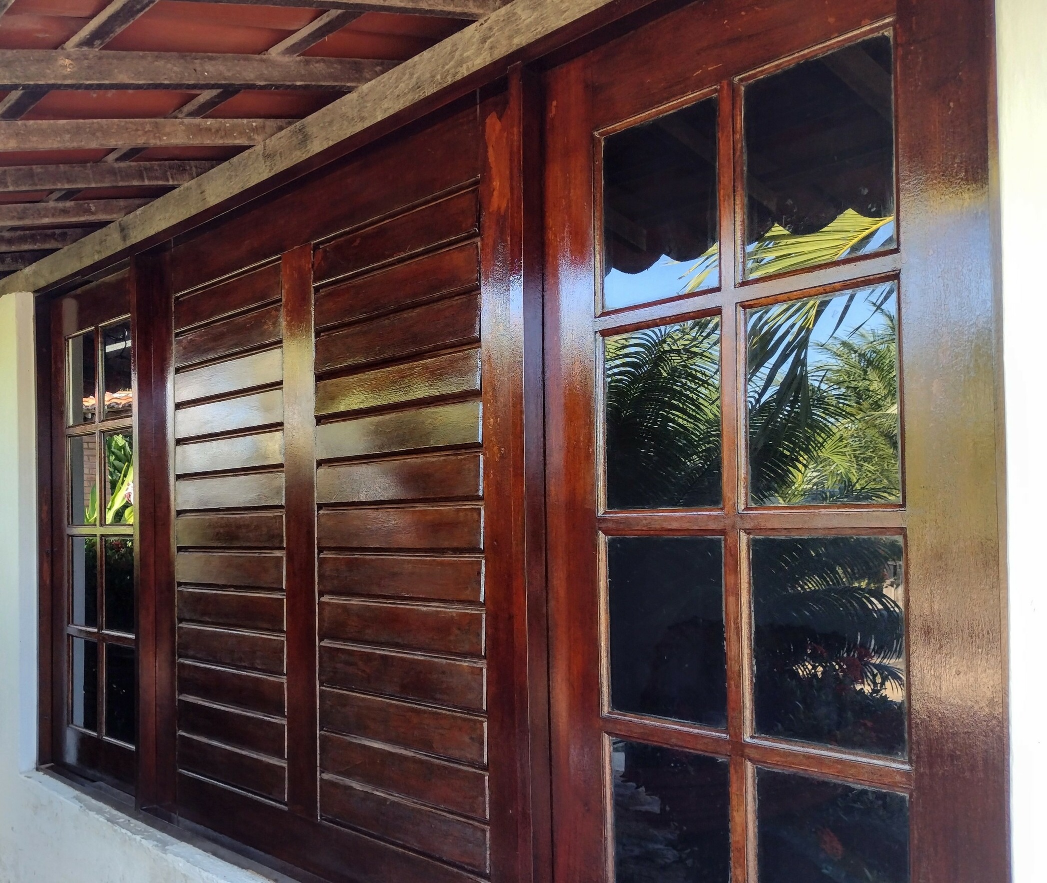 Maar ook Massaranduba wordt hier in de tropen onder invloed van hoge luchtvochtigheid in het regenseizoen, zoute zeelucht en intense uv straling na verloop van tijd minder mooi. Een jaarlijkse laklaag of vernislaag is het behoud van je hout.