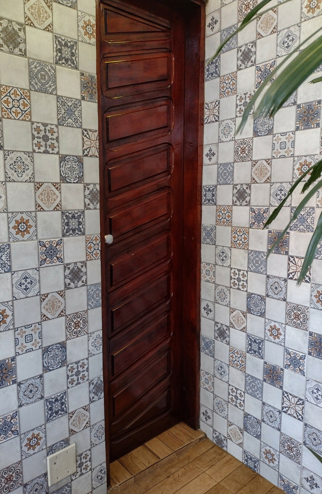 @Johny, al het gebruikte hout voor de deuren en kozijnen is hier van madeira Massaranduba, het meest harde en duurzame hout wat hier te koop is. Voornamelijk om te voorkomen dat het wordt aangevreten door de hier overal aanwezige houtworm, op dit hout breken ze hun tandjes :lol: