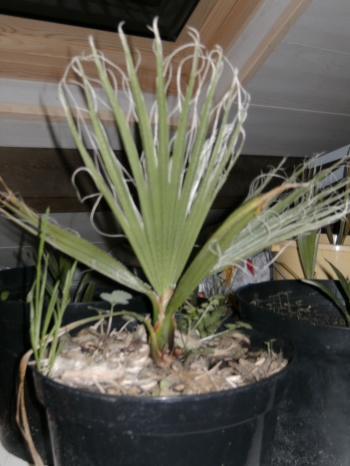 Op aanvraag van Christophe :D Dit zijn wagnerianus die ik van bij hem heb van vorig najaar. Toen hadden ze amper 2 blaadjes. Ze zijn toch beetje gegroeid. De Washingtonia (ook van bij Christophe) heeft hard zijn best gedaan. Op zolder groeien ze nu rustig verder.