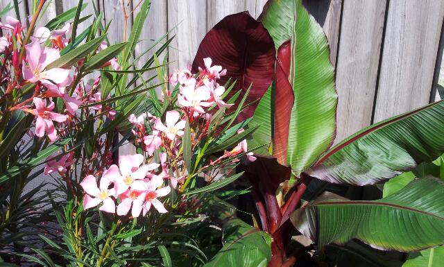 - Stukje half schaduw..fargesia en calocasia.