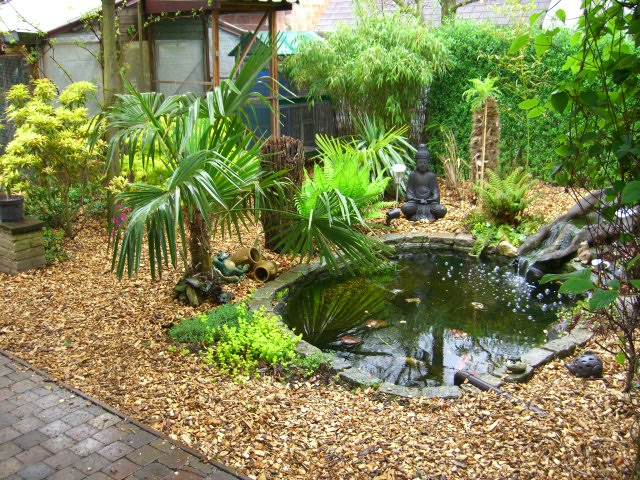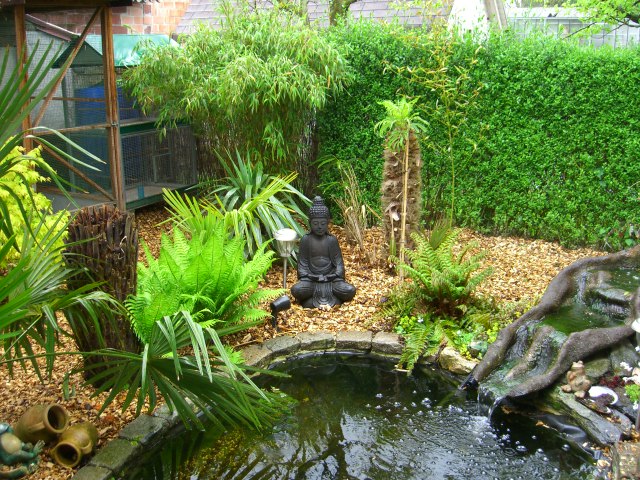 Héél mooi geworden en inderdaad zo'n knus stukje tuin bij de vijver.